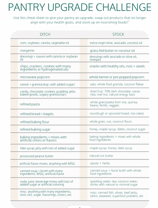 Live group sessions start January 12th. Time and meeting day of the week will be determined by the members of the group. You will have immediate access to the Pantry Upgrade Challenge upon enrollment. Group and 1:1 chat will be enabled January 12th.